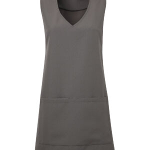 A very attractive and stylish wrap around tunic that offers businesses an alternative solution to traditional tabards and tunics. An over the head style that fastens from the back to front on the underside, then wraps back on itself and ties neatly at the back. This style is cut to flatter the female figure and features a v –neck and side vents which allow complete ease of movement.