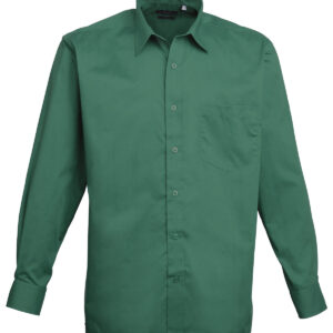 A men’s long sleeved classic fit Poplin shirt available in 27 colours from the Premier 'Colours Collection.' This classic work shirt has a stiffened formal cut collar which accommodates a ties perfectly. The left breast pocket and self-fabric buttons down the placket and cuffs makes for a smart and stylish everyday shirt which carries Premier's easy care label.