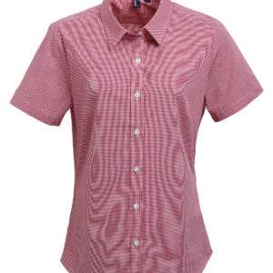 Premier Women's Microcheck (gingham) Short Sleeve Cotton Shirt