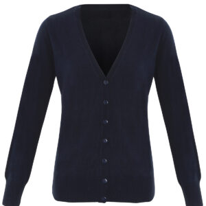A simple easy wearing cardigan for ladies that adds layers of style to your outfit. Designed with ribbed knit set-in sleeves, hem line and v-neck for a contemporary modern look. Self-coloured button through style. A wardrobe essential for staff who need to maintain a smart corporate image at all times.