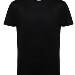 Wicking fabric. Stretch. Crew neck. Short sleeve. Lightweight. Twin-needle stitching on hem and arms. We recommend using block out vinyl and inks.Product contains no branded neck or waist label. Removable Kimble or looped garment tags. Inner seam label holds important product information on one label with a second label containing brand information which can be cut-away.