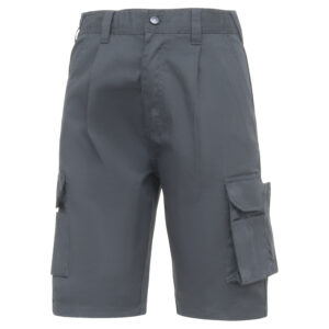 SIZES: 6 - 24 FABRIC: 65% polyester / 35% cotton WEIGHT: 245gsm • Multi-functional and hard wearing shorts • Part elasticated waistband for comfort • Multiple pockets with extra strong lining including two front and two rear pockets, combat style leg pockets and mobile phone pocket (on thigh) • Heavy duty non-scratch fixing stud on waistband • Triple stitched on all main seams for ultimate strength • High quality brass YKK zip with lifetime guarantee