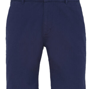 Men's chino shorts with two swings pockets and two back jet pockets with button fastening. Zip fly and button fastening to the front. Soft finish fabric. Product contains no branded neck label. Removable Kimble or looped garment tags. Inner seam label holds important product information on one label with a second label containing brand information which can be cut-away. Please note old stock may contain a fixed branded label.
