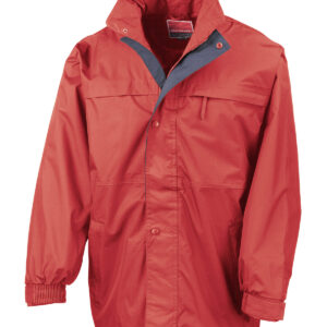Taped seams and twin needle stitched seams. Concealed hood in collar. Full front zip fastening. 2 side pockets, 1 chest pocket and 1 inside phone pocket. Elasticated cuffs with tear release adjusters. Adjustable shockcord hem and stud closing storm flap. Contrasting colour mesh lining. Contains recycled material.Decoration Guidelines:Decorating methods: Embroidery & Transfer print Decorators access point: Concealed Inner back zip.