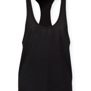 Look cool while warming up in this muscle cut racerback in an on-trend longline fit style. Self-fabric binding around neckline and armholes. Tear-out label for easy rebranding. A great fashion staple and ideal for a body and mind customer.