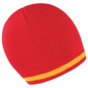 Windproof. 6 gauge dense knit. Stripe knit. Solid colour inner. Cold weather protection. Extremely warm. Stand out national colourways. Team colour trend.Decoration Guidelines:Decorating methods: Embroidery. Decorators access point: Open.