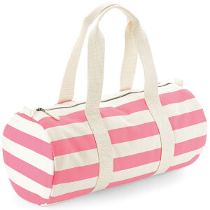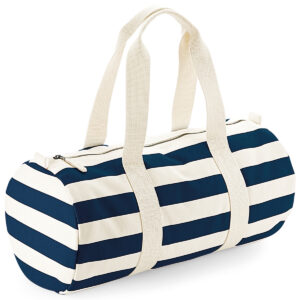 Horizontal stripes continue to influence the high street, and this Nautical Barrel Bag is a key holiday piece for fans of the maritime stripe design. Created using a soft brush cotton canvas and fashioned with comfortable webbing carry handles. This classic leisure style is perfect for both on and off the beach.