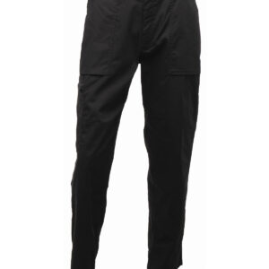 Part-elasticated waist. Knee patches. Belt loops. Multi pocketed with concealed zips. 2 front large pockets with hem bellows. Right side zipped pocket with welt covering. 2 back pockets - one zipped pocket with welt covering. Available in Short, Regular and Long leg lengths.