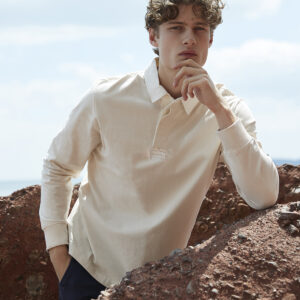 Slimmer fit rugby. Supersoft peached finish. Twin Needle Hems. Side vents with contrast tape detail. Contrast trim in back neck. Dyed to match buttons. Traditional Rugby Collar with cotton webbing. Unbranded: no back neck label. Size tab only with removable swing tag.