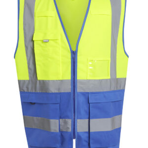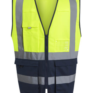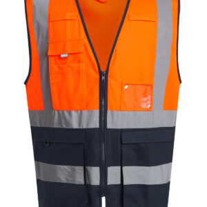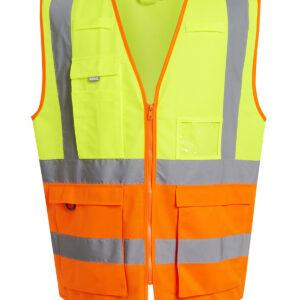 Lightweight and protective, the Pro hi-vis executive vest is a work safety essential. Featuring lightweight knit fabric, this hi-vis vest provides lasting comfort. It?s full of handy features, including a secure front zip, multiple pockets, radio loops and a D-ring attachment. Certified to EN ISO 20471:2013 A1:2016 Class 1: Yellow/Navy, Orange/Navy, Yellow/Black & Yellow/Royal Blue. Certified to EN ISO 20471:2013 A1:2016 Class 2: Yellow, Orange, Yellow/Orange. Orange colourway also conforms to RIS-3279/TOM.