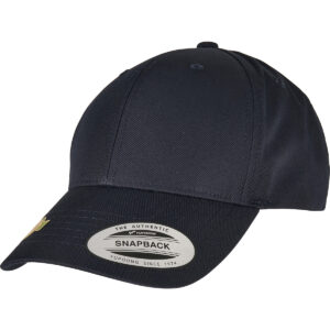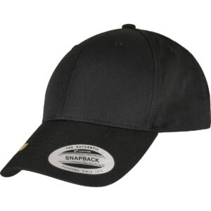Snapback, curved visor, six-panel. Certified amfori BSCI, WRAP, Sedex and Global Recycled Standard.