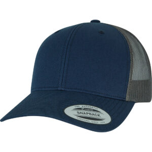 Two-coloured, mesh back and a snap closure ? that definitely sounds like a trucker cap. However, the retro trucker 2-tone offers a twist with its lower profile and structured canvas front instead of the typical foam. The centre seam on the front rounds off the casual look.