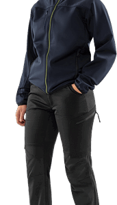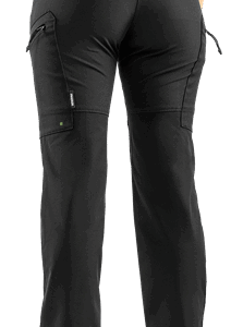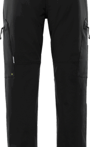Partly made of recycled and bio-based material / 4-way stretch material / Lightweight 4-way rip stop stretch at seat, back of thighs, crotch, knees and lower front legs / D-ring at waistband / 2 front pockets / Back pocket with zip / 2 large leg pockets with zip, one with 2 pen pockets / Pre-shaped knees / Adjustable leg length with 5 cm hem allowance / OEKO-TEX® certified.