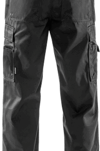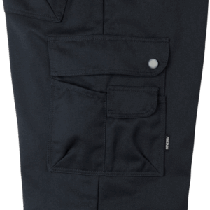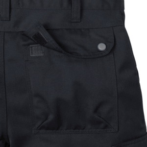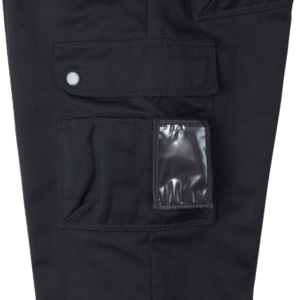 2 front pockets / 2 back pockets with flap with velcro and snap fastening / D-ring at waistband / 2 large leg pockets with flap, velcro and snap fastening, one with phone pocket and folding rule pocket, the other with pen pockets and ID-card pocket / OEKO-TEX® certified.