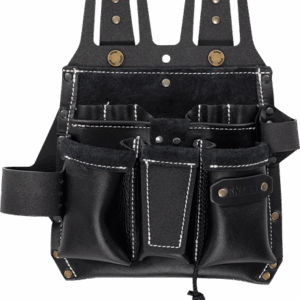 For electricians / 7 pockets for screwdrivers, pliers, cutters, nippers / 3 pockets for insulated pliers etc, electric tool can be attached to the centre pocket / Hammer loop / Sheath knife holder / Marking string holder / Rivet reinforced / Quick-grip / Water-repellent / Made in Sweden.