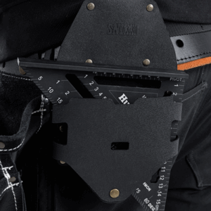 For carpenters, scaffolders, fitters etc / Fits speed square 18,5 cm / Fits both right- and left-hand use / Opening at front for attaching other pocket or holder with quick-snap fastening / Quick-snap / Dirt and water repellent / Pocket height 13 cm.