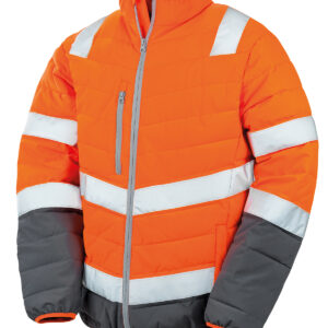 EN ISO 20471:2013+A1-2016 Class 2 sizes (L-4XL) Class 3. RIS-3279-TOM ISSUE 2:2019 CLASS 2 (orange only). Super soft feel: lightweight and warm. Easy to pack, compact stowage. Zipped chest and side pockets. Dark lower panel masks grime. Quiet to wear. Reflective shoulder, body and sleeve bands. Grey colour lining and trim. Soft bound cuff and hem. Longer back panel. Stand-up collar. Hang tag loop. YKK main zip. Inside pocket. Ready to brand tag free. Quiet to wear. Decorating methods: Embroidery. Decorators access point: Inside left chest and back hidden zips.
