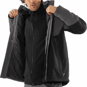 Partly recycled material / Outer fabric of 4-way stretch material / Water repellent and windproof / Quilted lining / Fleece-lined collar / Concealed front zip under placket with snap fastening / Chest pocket with covered zip / 2 front pockets with covered zip / Inside pocket / Pre-shaped sleeves / Rib-knit inner cuff / Adjustable drawstring at hem / Extended back / Reflective details / Zip in lining for transfer / Waterpillar > 3,000 mm / Approved according to EN 342 / OEKO-TEX® certified.