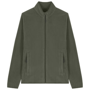 Set-in sleeves. Elastic binding at neck edge, cuffs and hem. Inside back neck grosgrain loop. Nylon coil zip with metal zip pull and cord ending. Brushed fabric with anti-pilling finish on the inside and outside. Front side welt pockets with zip opening. Inside back neck tape in recycled polyester.