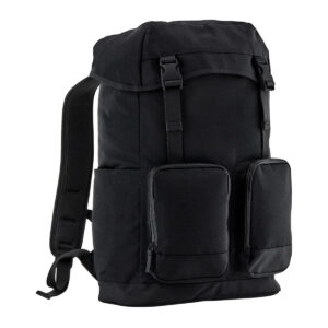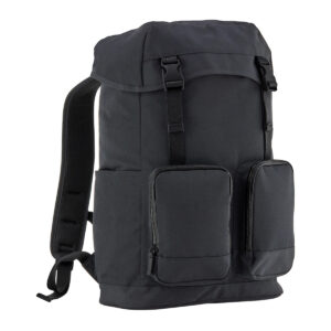 Contains 100% GRS certified recycled polyester, certified by Control Union CU811033. Water-repellent fabric. Rear padded laptop compartment, compatible up to 16". Side pockets with magnetic closure. Large main compartment. Two zipped front pockets. Zipped rear security pocket. PU, self-coloured zip pulls. Drawstring closure. Rear luggage strap. Padded, adjustable shoulder straps. Grab handle. TearAway label for ease of rebranding.