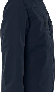 Partly recycled material / Ripstop 4-way stretch material / Waterproof, windproof and breathable / Taped seams / Detachable and adjustable hood with reinforced peak / Fleece-lined collar / Full-length water-repellent front zip with inside placket / 2 chest pockets with concealed zip / 2 front pockets with concealed zip / Inside pocket with zip / Pre-shaped sleeves / Adjustable sleeve end / Elastic inner cuff with thumb grip / Adjustable drawstring at bottom / Extended back / Reflective detail / Zip in lining for transfer / Waterpillar 10,000 mm / RET <15 / Approved according to EN 343 class 4/4 / OEKO-TEX® certified.