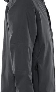 Recycled material / 4-way stretch material / Waterproof, windproof and breathable / Taped seams / Adjustable hood with reinforced peak / Full-length water-repellent front zip with inside placket / Chest pocket with concealed vertical zip / Front pockets with zip / Inside mesh pocket with elastic edge / Pre-shaped sleeves / Adjustable sleeve end with rounded upper side / Adjustable drawstring at bottom / Extended back / Reflective details on hood / Waterpillar 13,000 mm / RET <15 / Approved according to EN 343 class 4/4 / OEKO-TEX® certified.