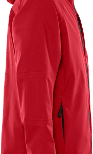Recycled material / 4-way stretch material / Waterproof, windproof and breathable / Taped seams / Adjustable hood with reinforced peak / Full-length water-repellent front zip with inside placket / Chest pocket with concealed vertical zip / Front pockets with zip / Inside mesh pocket with elastic edge / Pre-shaped sleeves / Adjustable sleeve end with rounded upper side / Adjustable drawstring at bottom / Extended back / Reflective details on hood / Waterpillar 13,000 mm / RET <15 / Approved according to EN 343 class 4/4 / OEKO-TEX® certified.