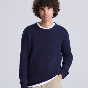 Working towards a more sustainable planet, the Taroko sweater is made from using 70% regenerated cotton waste and 30% recycled polyester. This stylish sweater features crew neck, ribbed cuffs and hem with a seed stitch for a truly unique layer. Waffle knit and fashion fit.