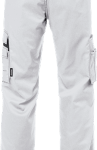 Mechanical stretch fabric / Dark grey reflective details / Concealed front button / 2 front pockets / 2 back pockets / Double crotch seam / 2 thigh pockets / Leg pocket with extra pockets / Loop for folding rule inside leg pocket / Leg pocket with flap and velcro fastening, mobile phone pocket and extra pocket with flap and velcro fastening, D-ring under flap / CORDURA®-reinforced leg ends / Adjustable leg length with 5 cm hem allowance / Leasing-laundry tested according to ISO 15797 / With EPD (Environmental Product Declaration) – registration number 1701 at environdec.com / OEKO-TEX® certified / RFID chip can be added as a VAS solution.