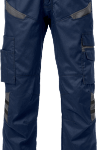 Mechanical stretch fabric / Dark grey reflective details / Concealed front button / 2 front pockets / 2 back pockets / Double crotch seam / 2 thigh pockets / Leg pocket with extra pockets / Loop for folding rule inside leg pocket / Leg pocket with flap and velcro fastening, mobile phone pocket and extra pocket with flap and velcro fastening, D-ring under flap / CORDURA®-reinforced leg ends / Adjustable leg length with 5 cm hem allowance / Leasing-laundry tested according to ISO 15797 / With EPD (Environmental Product Declaration) – registration number 1701 at environdec.com / OEKO-TEX® certified / RFID chip can be added as a VAS solution.