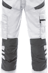 Mechanical stretch fabric / Dark grey reflective details / Concealed front button / 2 front pockets / 2 back pockets / Double crotch seam / 2 thigh pockets / Leg pocket with extra pockets / Loop for folding rule inside leg pocket / Leg pocket with flap and velcro fastening, mobile phone pocket and extra pocket with flap and velcro fastening, D-ring under flap / CORDURA®-reinforced knee pockets with outside opening / Height adjustment for knee pads in knee pocket / CORDURA®-reinforced leg ends / Approved according to EN 14404 together with kneepads 124292 / Leasing-laundry tested according to ISO 15797 / OEKO-TEX® certified / RFID chip can be added as a VAS solution.