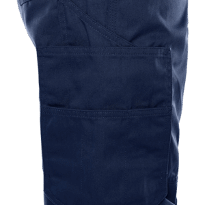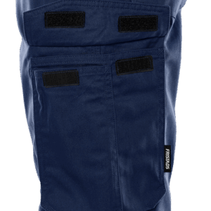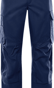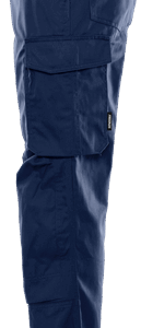 2 front pockets / 2 back pockets, one with flap / Concealed plastic front button / Leg pocket with inside folding rule pocket over side seam and 3 extra pockets / Leg pocket with outside mobile phone pocket with flap and velcro fastening / Knee pockets with outside opening / Height adjustment for knee pads in knee pocket / Triple needle stitching / Approved according to EN 14404 together with kneepads 124292 / Leasing-laundry tested according to ISO 15797 / OEKO-TEX® certified.