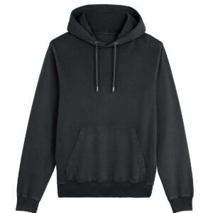 Unisex medium fit garment-dyed hoodie sweatshirt. Set-in sleeve. Double-layered hood in self- fabric. Round drawcords in matching body colour with closed metal tipping.