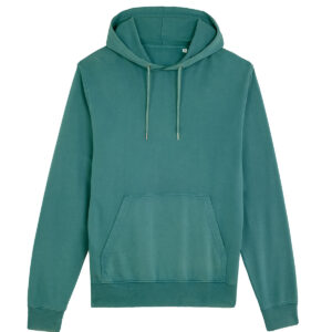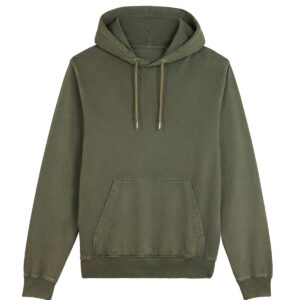 Unisex medium fit garment dyed hoodie sweatshirt. Set-in sleeve. Double-layered hood in self- fabric. Round drawcords in matching body colour with closed metal tipping. Metal eyelets. Inside herringbone back neck tape. Self-fabric half-moon at back neck. 1x1 rib at sleeve hem and bottom hem. Armhole, sleeve hem and bottom hem with twin-needle topstitch. Kangaroo pocket at front. Slight shading on seams to give washed look. Garment-dyed product: each garment may vary in appearance, colour may bleed, follow our care label. Read carefully print recommendations.
