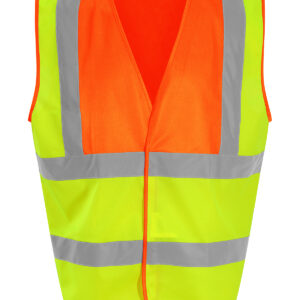 Certified EN ISO 20471:2013+A1:2016. RIS-3279-TOM ISSUE 1:2016 (Orange only). HV Orange & HV Yellow - Class 2. Two-Colour - Class 1. Solid Colours - Non Certified. Full front tear and release fastening. Over shoulder and around body reflective tape.