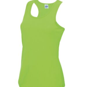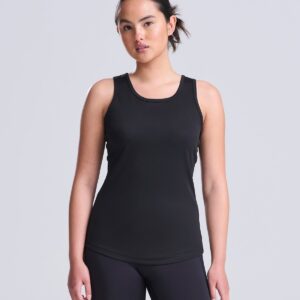 Girlie fit. Racer back style. Curved back hem for added comfort. AWDis’ own Neoteric™ texture fabric with inherent wickability and quick drying properties. Self-fabric binding around neckline and armholes. Simple tear off label makes it perfect for rebranding. UPF 30+ UV protection.
