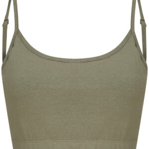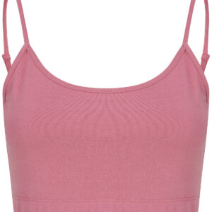 Women?s cropped top/bralette. Adjustable spaghetti straps. Bound neck and armholes. Double-layer front for secret support. Rib-length with concealed elastic band. Co-ordinates with SF Sustainable fashion range. Brand-free, for easy rebranding. Resealable, recyclable bags; made from 100% recycled plastic. BSCI certified. Oeko-Tex certified. SEDEX certified. Vegan certified.