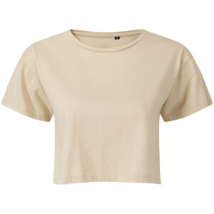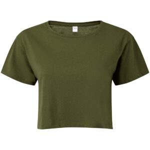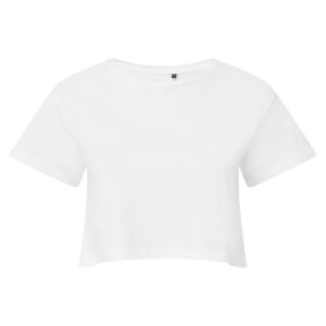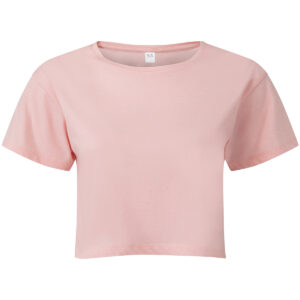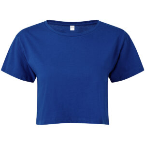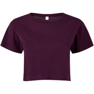 Cropped t-shirt. Short sleeve. Crew neck. Soft-feel. We recommend using block out vinyl and inks.Product contains no branded neck or waist label. Removable Kimble or looped garment tags. Inner seam label holds important product information on one label with a second label containing brand information which can be cut-away.