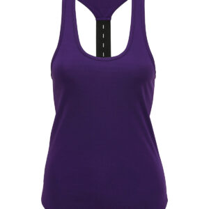 Scoop neck. Elastic racer back with 'laser cut' holes. We recommend using block out vinyl and inks.Product contains no branded neck or waist label. Removable Kimble or looped garment tags. Inner seam label holds important product information on one label with a second label containing brand information which can be cut-away.