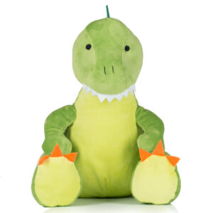 Take a trip back in time with the Zippie dinosaur with its soft plush fabric and bright green body with felt feet, teeth and spikes. The tummy is easily decorated with zip access, allowing for embroidery and sublimation printing.